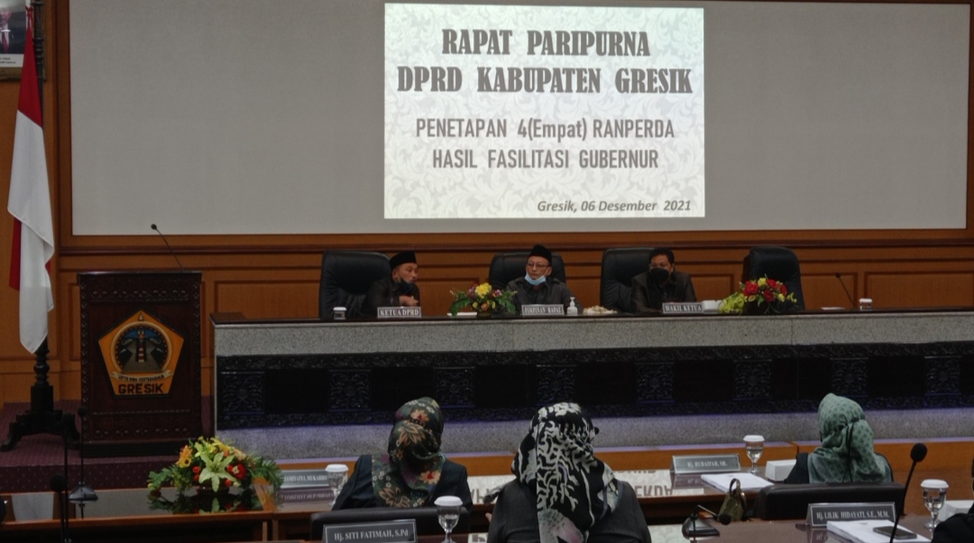KLIKJATIM.Com | Gresik--Dewan Perwakilan Rakyat Daerah (DPRD) Kabupaten Gresik mengesahkan empat Rancangan Peraturan Daerah (Ranperda) yang telah selesai melalui proses fasilitasi Gubernur dalam rapat paripurna yang digelar Senin (6/12/2021).