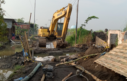 KLIKJATIM.Com I Sidoarjo - Semburan gas bercampur lumpur dan air di Dusun Kaliwungu, Desa Banjarasri, Kecamatan Tanggulangin membuat panik warga sekitar.