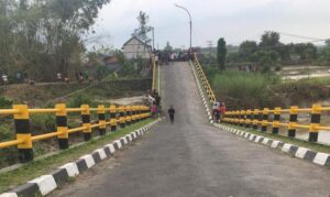KLIKJATIM.Com | Gresik — Jembatan Kacangan Kecamatan Benjeng yang menghubungkan Desa Bulurejo dan Desa Gluranploso ambruk.