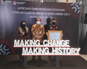 Penghargaan itu diberikan secara simbolis Menteri PAN-RB Tjahjo Kumolo kepada Kepala KPPB TMP B Gresik, Bier Budi Kismuljanto bersama sejumlah penerima lainnya. Penganugerahan Zona Integritas Menuju WBK/WBBM 2021 itu juga dihadiri Wakil Presiden Maruf Amin secara virtual.