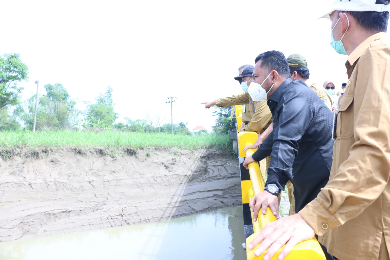 KLIKJATIM.Com | Gresik — Bupati Gresik Fandi Akhmad Yani beserta jajaran, melihat langsung Jembatan Kacangan yang ambruk. Jembatan yang membentang antara Desa Bulurejo dan Gluranploso ini ambruk, pada Minggu (19/12/2021) sore WIB.