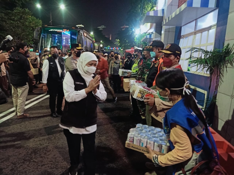 Setelah melihat kondisi posyan kurang lebih 30 menit, Gubernur Jatim dan Forkompimda langsung memberikan bingkisan makanan dan minuman kepada posyan di Taman Bungkul Surabaya yang langsung diwakili oleh Anggota Polisi, TNI, Satpol PP Surabaya, Pramuka, dan tim kesehatan.