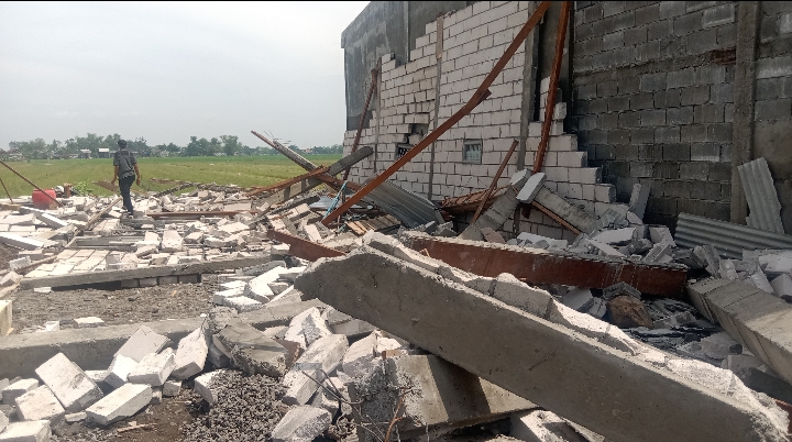 Beberapa teras rumah warga ambruk. Bahkan satu konstruksi gudang roboh. Empat pekerja tertimpa bangunan dan mengalami patah tulang.