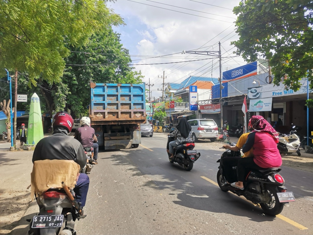 Kondisi Jalan Manyar yang dipadati kendaraan bermotor dan kendaraan berat (Faiz/klikjatim.com)
