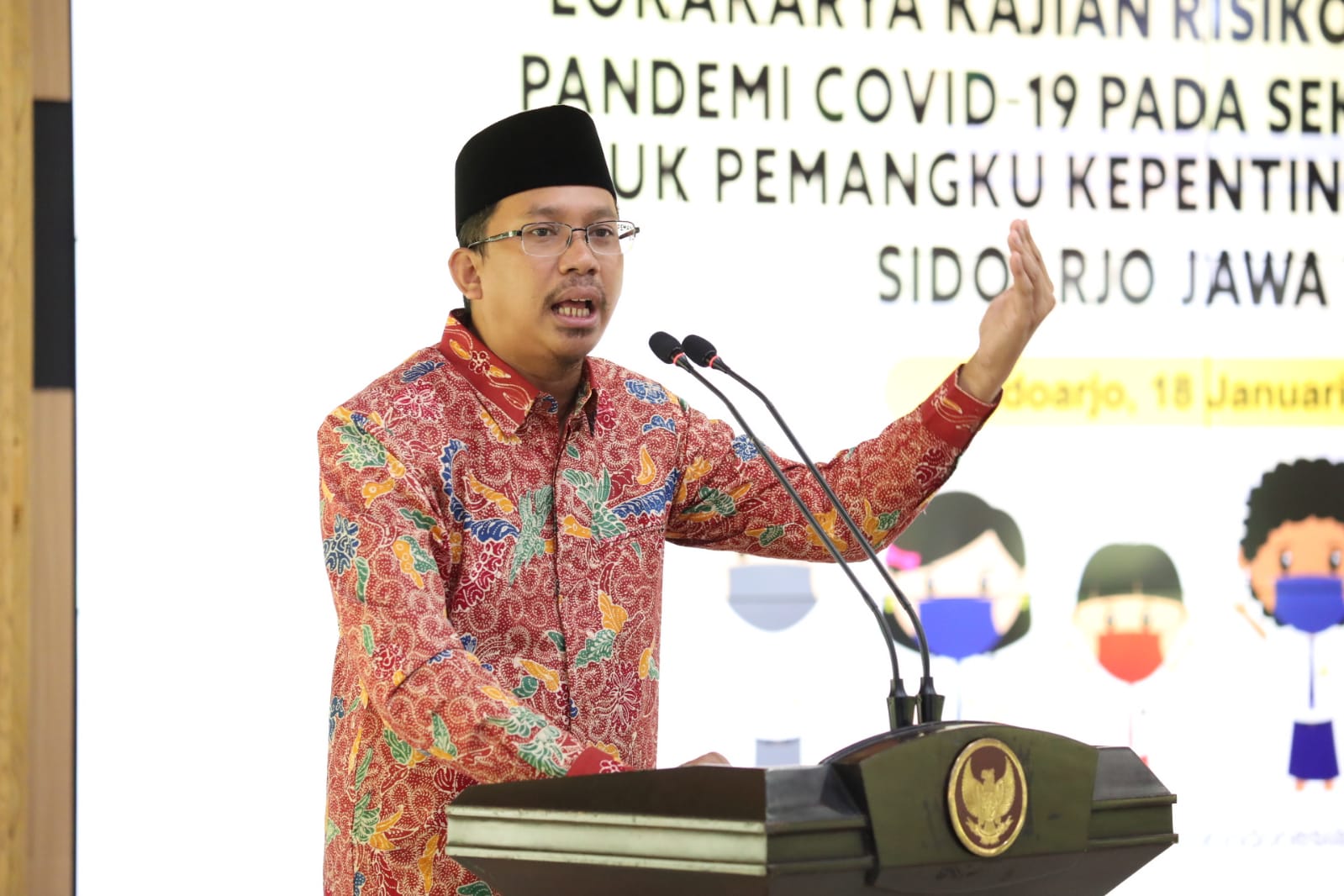 “Kunci pembangunan itu data, termasuk data masalah. Dapat data dari mana? Ya riset. Dari data, keluar rekomendasi. Kalau datanya tidak tepat, obatnya jadi keliru,” ujar Bupati Muhdlor saat membuka kegiatan “Lokakarya Kajian Risiko dan Kebijakan Pandemi Covid-19 pada Sektor Pendidikan Untuk Pemangku Kepentingan”, Selasa (18/1/2022) di Pendopo Delta Wibawa.