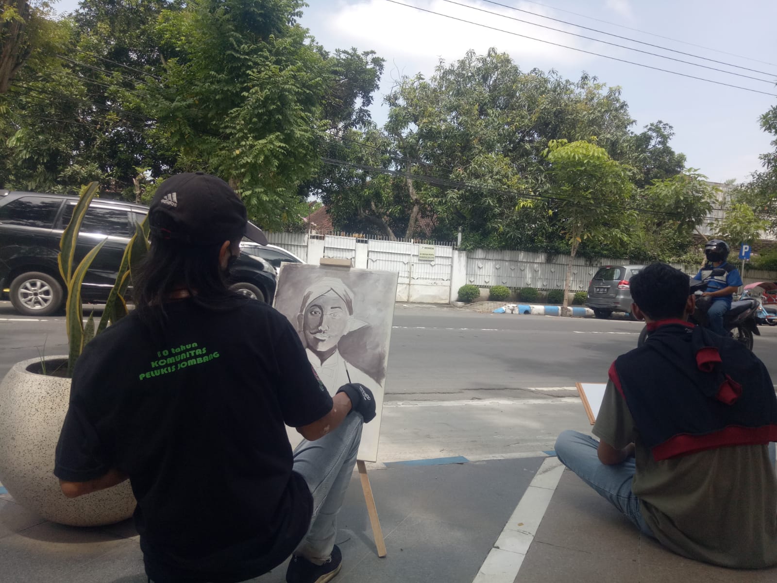 Ketua Kopi Jombang, Sugeng Hartobi (42), mengatakan, bahwa dirinya bersama puluhan temannya, sengaja melukis di depan PWI Jombang dalam rangka memperingati Hari Pers Nasional yamg jatuh pada 09 Februari 2022.