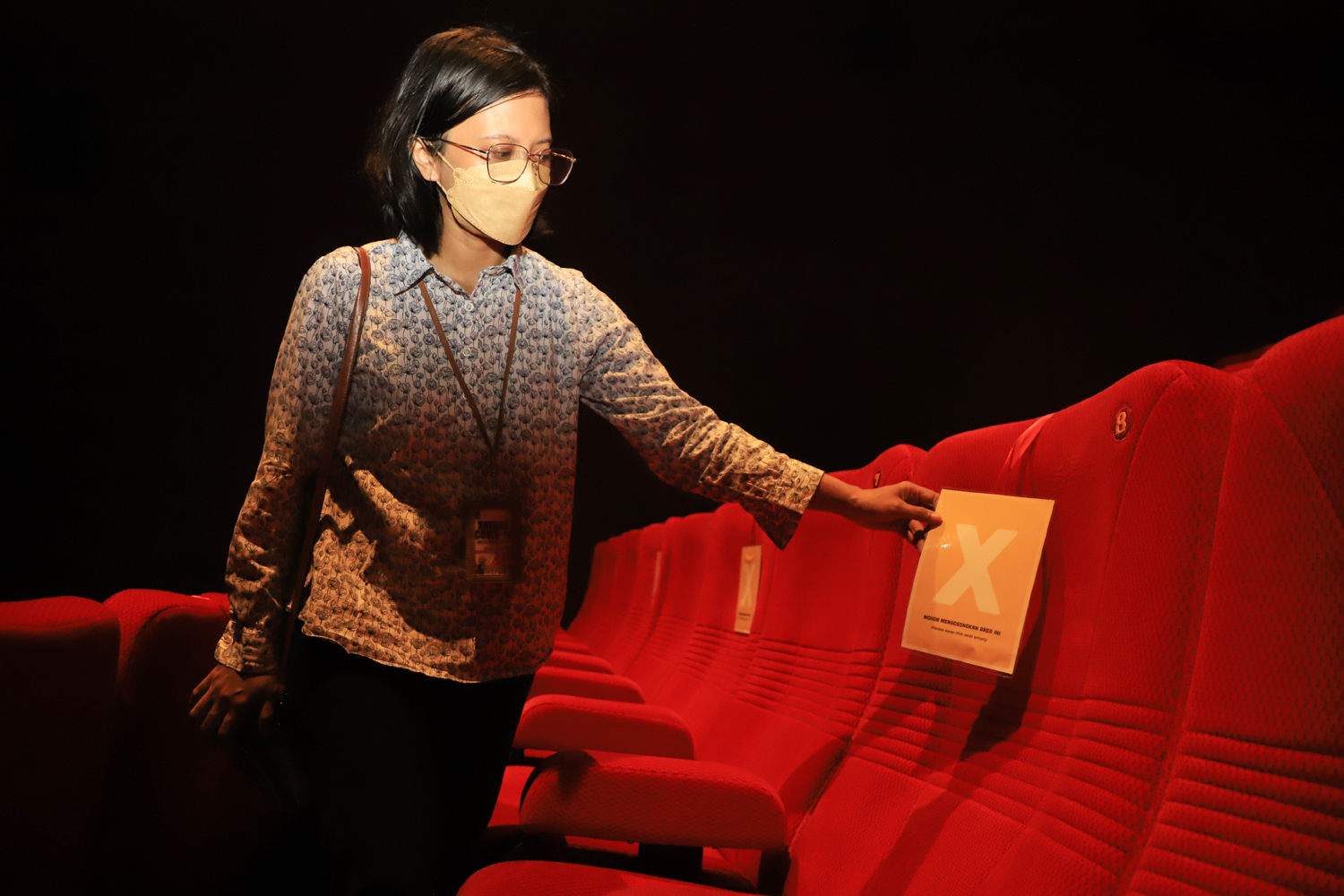 Salah satunya penerapan prokes di area gedung bioskop. Memang diperbolehkan beroperasi tapi wajib menggunakan aplikasi Peduli Lindungi untuk melakukan skrining terhadap semua pengunjung dan pegawai. Maka, terkait kapasitas maksimal yakni sebanyak 70 persen dan hanya pengunjung dengan kategori hijau dalam aplikasi Peduli Lindungi yang boleh masuk kecuali tidak bisa divaksin karena alasan kesehatan.