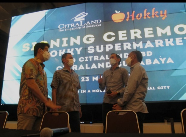 Penandatanganan kerjasama pengembangan Hokky Supermarket di CitraLand CBD Surabaya dilaksanakan pada Rabu (23/3/2022) di Marketing Office CitraLand Surabaya oleh Sutoto Yakobus selaku Senior Director Ciputra Group, dan Direktur Utama Mitra Belanja Anda, Rudy Wirawan bersama Direktur Erajaya Group, Rudy Tjandra serta tim management Hokky Supermarket.