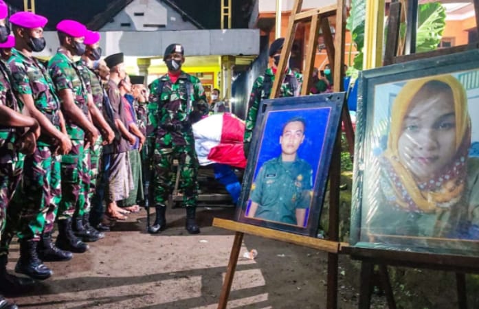 KLIKJATIM.Com I Sidoarjo – Isak tangis menyambut kedatangan jenasah Sertu Eka Andriyanto Hasugian dan Sri Lestari Indah Putri di Desa Sawo, Kecamatan Sukodono, Sidoarjo, Jumat (1/4/2022) malam. Keduanya merupakan korban tewas karena diserang Kelompok Kriminal Bersenjata (KKB), atau Kelompok Separatis Teroris (KST) di Elelim, Kabupaten Yalimo, Papua.