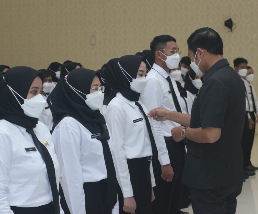 KLIKJATIM.Com | Lamongan--Sebanyak 102 CPNS menerima SK dari Bupati Lamongan Yuhronur Efendi di gedung Gajah Mada lantai 7 Pemkab Lamongan, Rabu (6/4/2022). Diserahkannya SK CPNS merupakan simbol amanah, kepercayaan, yang dibebankan untuk bekerja lebih baik dan lebih profesional.