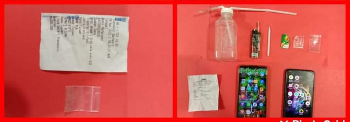 Polisi yang menangkap kedua pemuda ini langsung melakukan pendalaman dan penggeledahan, hasilnya ditemukan sejumlah barang bukti seperti dua kantong plastik klip kecil berisi sisa sabu dengan berat bruto 0,10 gram dan 0,08 gram jumlah 0,18 gram.