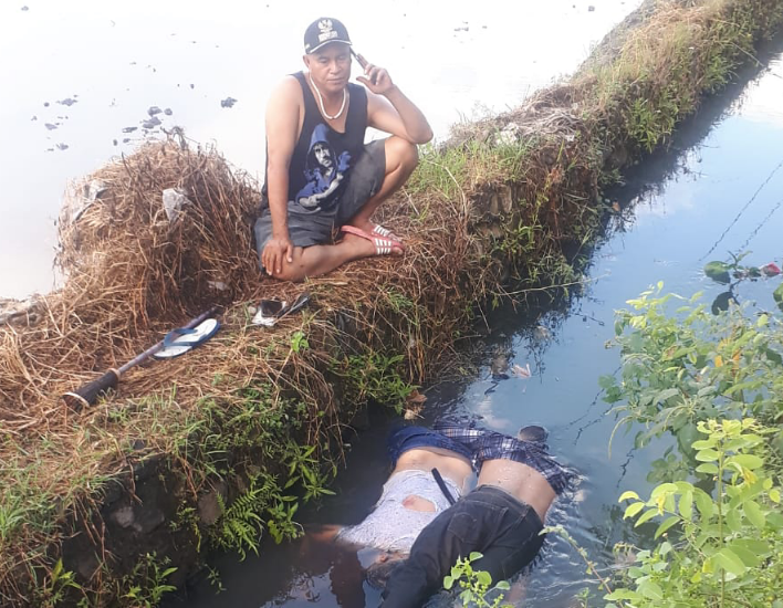 KLIKJATIM.Com | Sidoarjo - Dua pria ditemukan tewas tertelungkup di parit persawahan Desa Balongdowo, Kecamatan Candi, Minggu (22/5/2022) pagi.