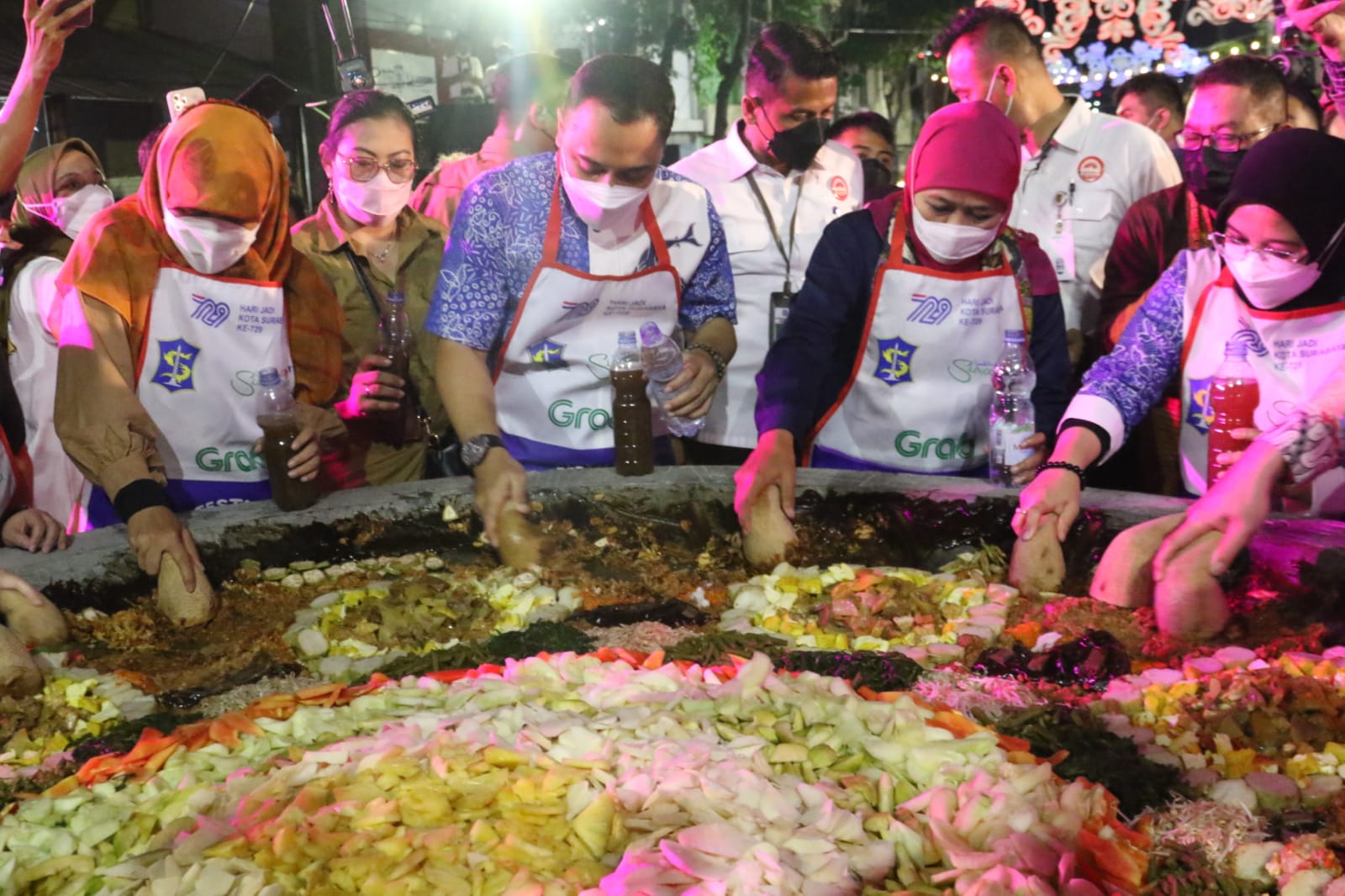 Khofifah dan Eri Cahyadi Nguleg Rujak Bareng di Cobek Raksasa