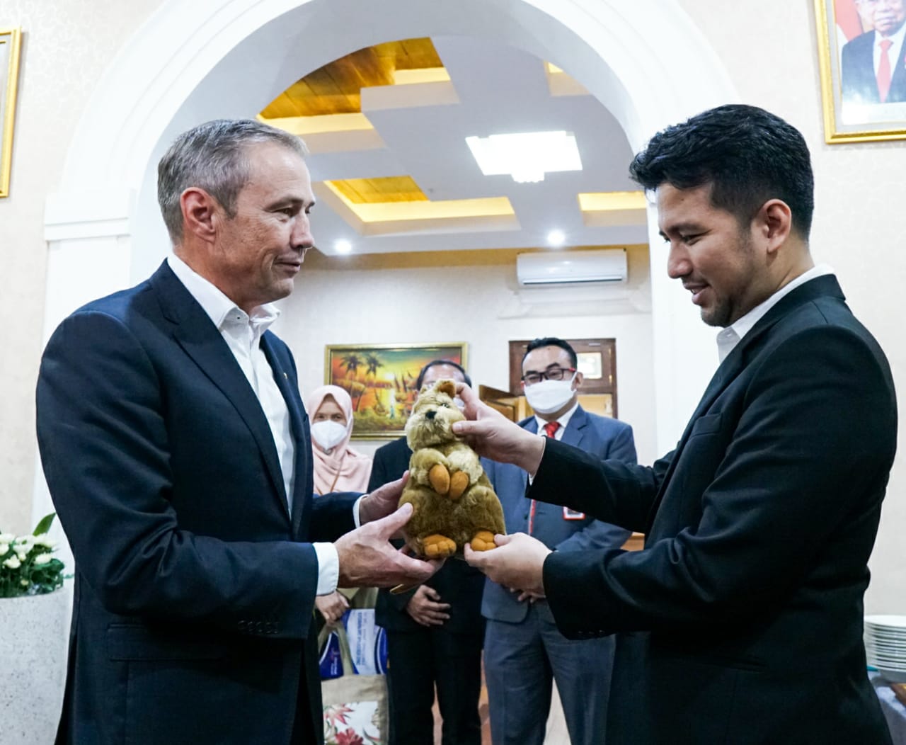 KLIKJATIM.Com | Surabaya - Wakil Gubernur Jatim Emil Elestianto Dardak menerima kunjungan Wakil Perdana Menteri Australia Barat Roger Cook di Gedung Negara Grahadi, Surabaya, Senin (30/5/2022) kemarin.