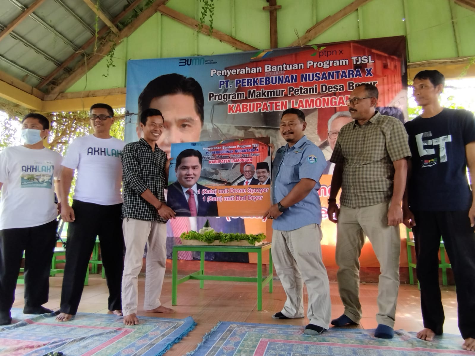 Holding Perkebunan PTPN III (Persero) dan PTPN X terus berupaya meningkatkan kepeduliannya melalui Program Tanggung Jawab Sosial dan Lingkungan (TJSL) terhadap kesejahteraan petani dengan pemberian bantuan alat pertanian drone sprayer dan bed dryer.