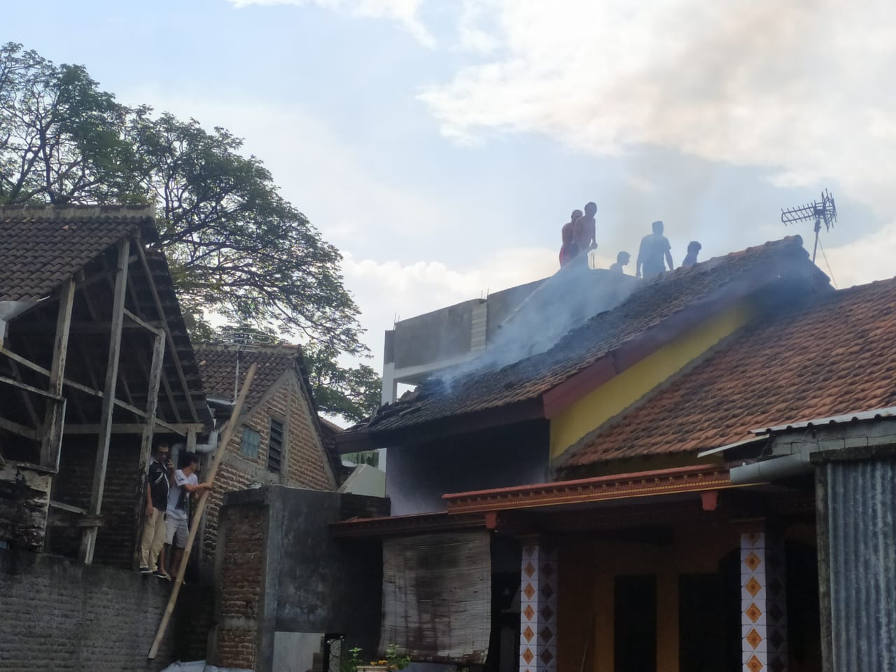 Warga bersama pemilik mencoba memadamkan api dengan alat seadanya. Juga membongkar atap rumah milik Mujiono tersebut, agar mudah untuk dipadamkan.