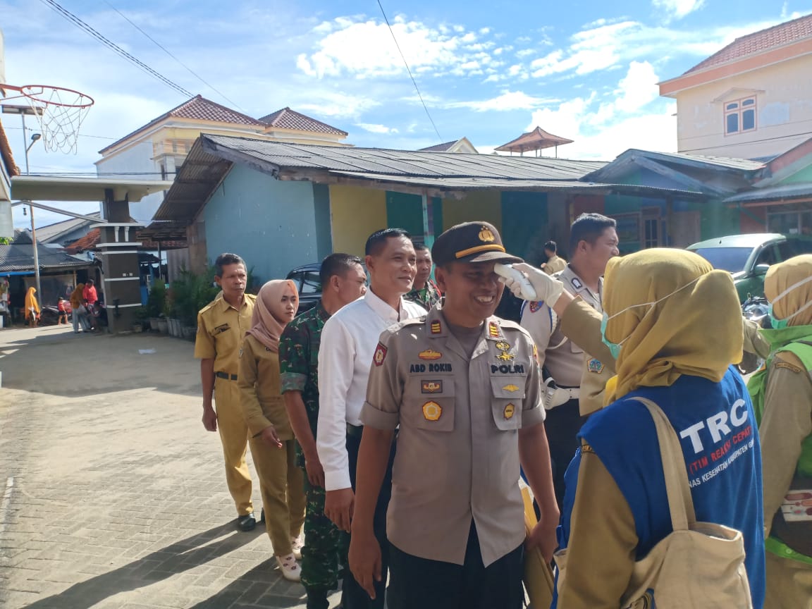KLIKJATIM.Com | Gresik - Operasi gabungan pencegahan virus corona terus digalakkan oleh jajaran Muspika Tambak Pulau Bawean. Operasi dari TNI-Polri serta Puskesmas Kecamatan Tambak rutin sosialisasi kepada masyarakat antisipasi pencegahan virus corona. Mereka juga rutin tes suhu tubuh setiap pagi.