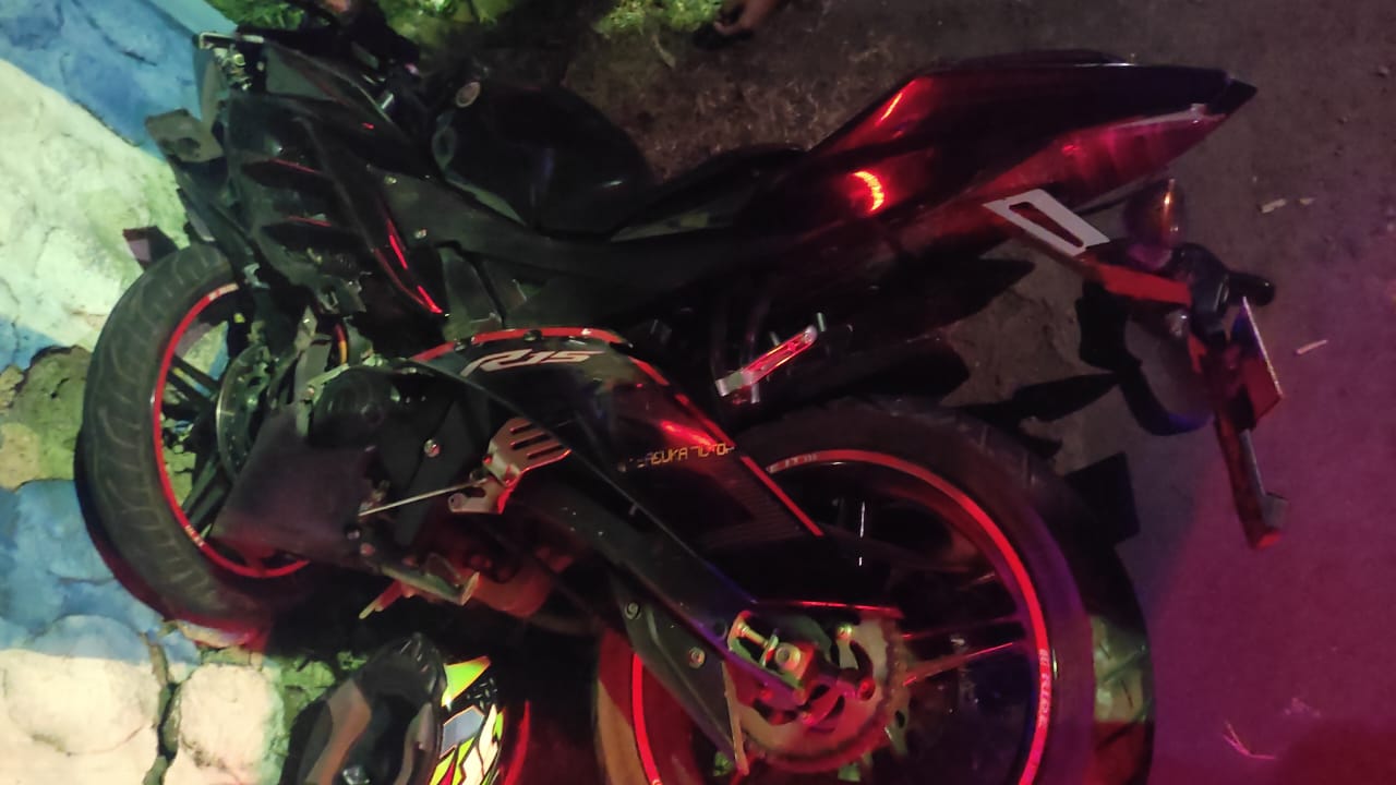 "Karena jarak terlalu dekat sehingga R2 (sepeda motor, red) menabrak bodi mobil sebelah kanan dan menabrak pembatas jalan," tegasnya.