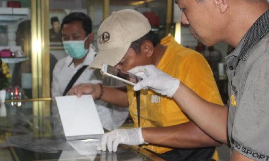 Dikatakan, saat kejadian kondisi toko emas sedang sepi. Pelaku yang berboncengan, satu orang melompat masuk area karyawan dan penjaga toko menodongkan sajam. Pelaku lainnya berada di depan etalase membawa barang yang mirip senjata api. "Pelaku mengancam karyawan akan dilukai jika melawan, lalu mengambil emas yang ada di dalam etalse kaca. Setelah mengambil emas, pelaku kabur menggunakan sepeda motornya," ujarnya.