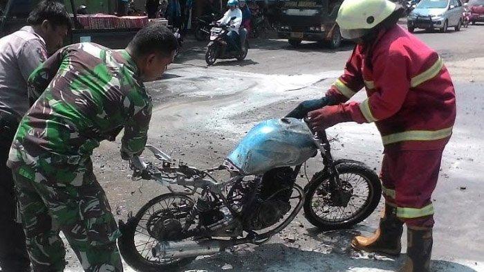 Kronologisnya bermula setelah pemilik sepeda motor mengisi bahan bakar. Pada saat menyalahkan kendaraan ternyata muncul percikan api dari bagian busi sehingga menyulut selang kran bensin. Api langsung membesar.