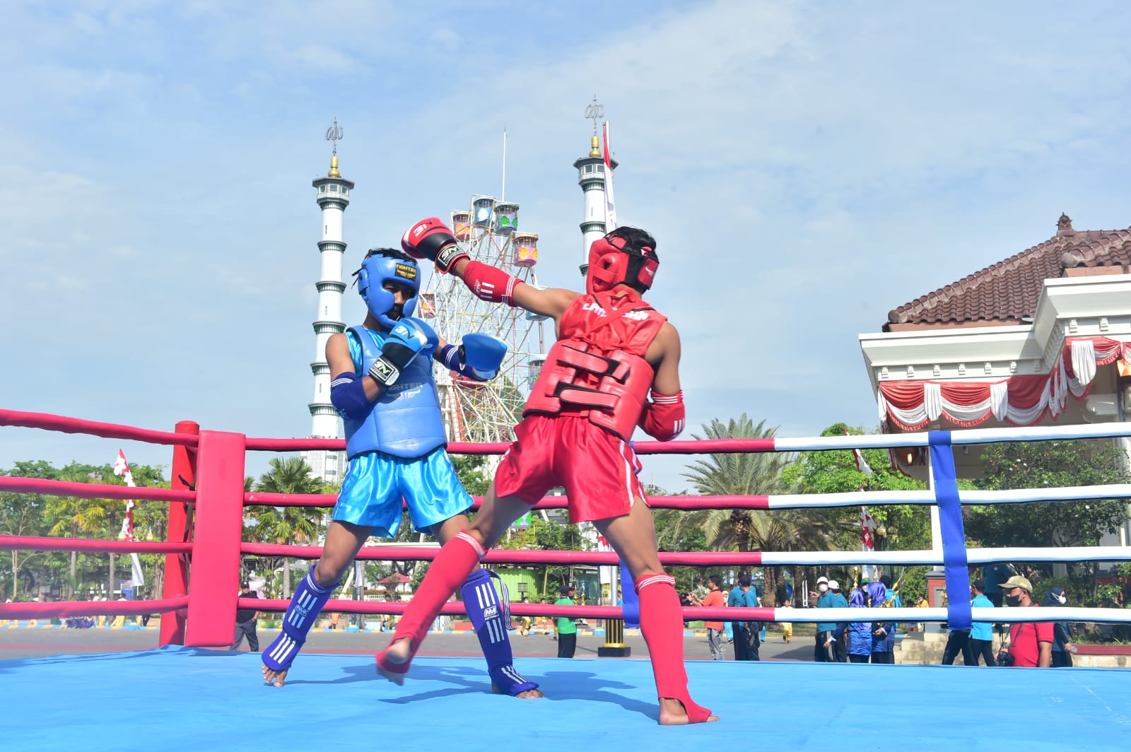 Berbagai atraksi para atlet cabang olahraga seperti Pencak Silat, Gulat Sambo, Taekwondo, Karate, Kick Boxing, Tarung Derajat digelar diatas ring. Pertandingan tak hanya menyedot perhatian Bupati Lamongan Yuhronur Efendi, namun juga menarik perhatian para masyarakat dan pelajar yang sedang melakukan aktifitas olahraga di Alun-alun Lamongan.