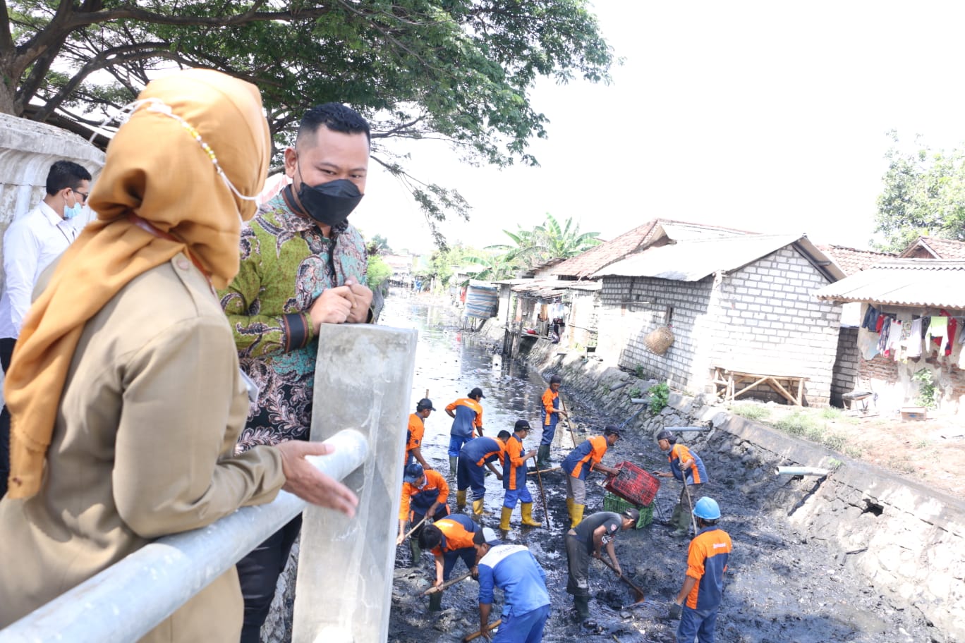 Saat itu, selain meninjau rumah pompa, Gus Yani melihat muara sungai yang membawa air menuju laut, kondisinya membuat Bupati miris karena banyak tumpukan sampah.