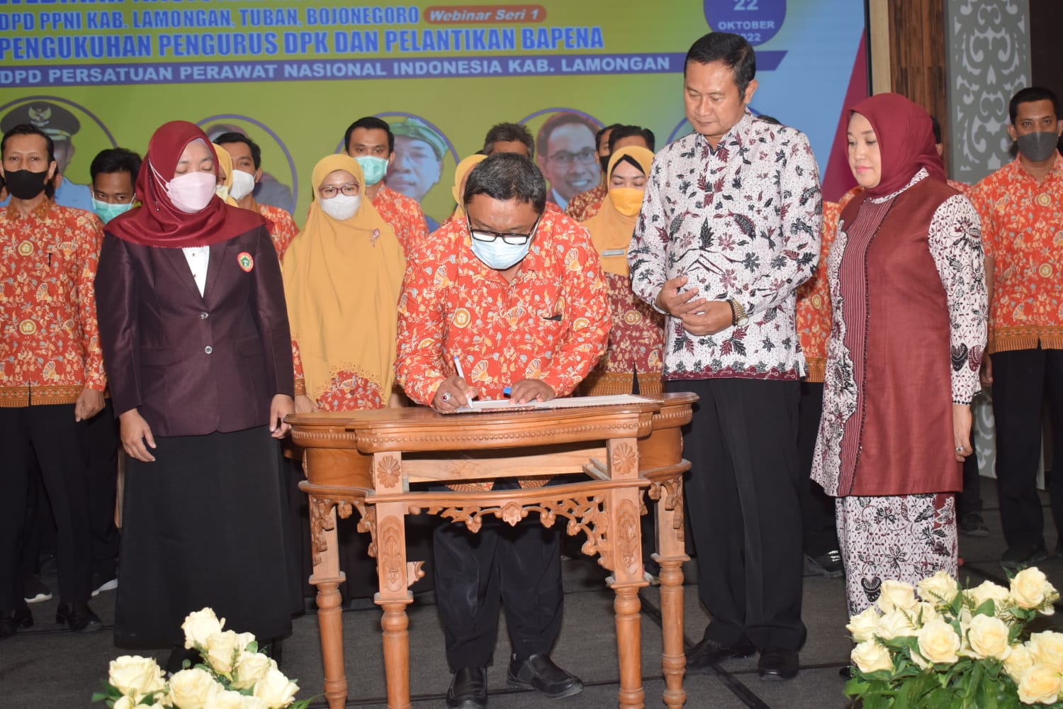Hadir pula dalam kesempatan tersebut, Ketua DPW (Dewan Pengurus Wilayah) PPNI Nur Salam, Kepala BPBD Lamongan Gunadi, Kepala Dinas Kesehatan Lamongan Taufik Hidayat, juga Ketua TP PKK Kabupaten Lamongan Anis Kartika Yes. (yud)