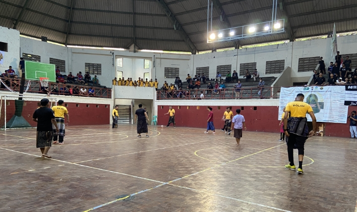 Pemandangan pertandingan ala santri itu terlihat ketika penutupan Lomba Futsal Santri Piala Kapolres Ponorogo. Pertandingan digelar di GOR Singodimedjo, Kamis (10/11/2022).