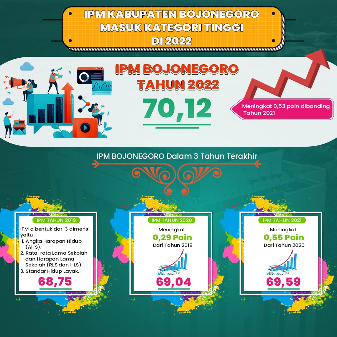 Adapun IPM Bojonegoro pada 2019 nilainya 68,75 (sedang). Di 2020 nilai IPM Bojonegoro 69,04 (sedang). Kenaikannya sebesar 0,29. Di 2021, IPM Bojonegoro naik lagi dengan nilai mencapai 69,59. Dengan kenaikan 0,55 jika dibandingkan antara 2021 dan 2020. Sedangkan di 2022, untuk pertama kalinya IPM Bojonegoro berada di kategori tinggi dengan nilai 70,12. Antara tahun 2022 dengan 2021, memiliki kenaikan 0,53. (adv/mkr)