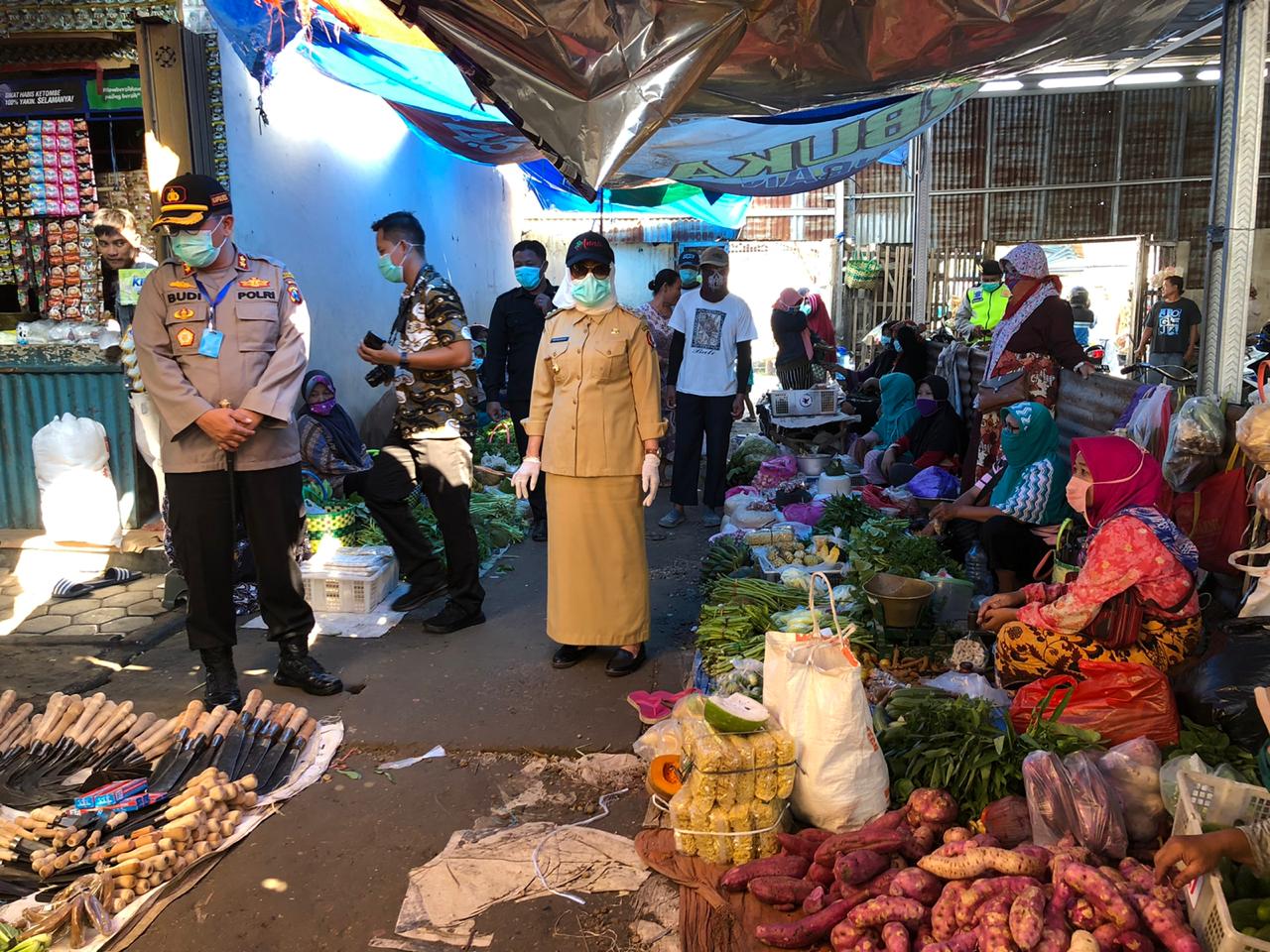 “Saya bersama Pak Kapolres melakukan sidak di pasar untuk melihat situasi dan kondisi saat ini serta memberikan himbauan kepada para pedagang dan warga masyarakat yang berbelanja, tetap menjaga kebersihan lingkungan di pasar, juga jaga jarak antar pedagang sering-sering cuci tangan,” kata Bupati Anna di sela-sela sidak di Pasar Kapas.