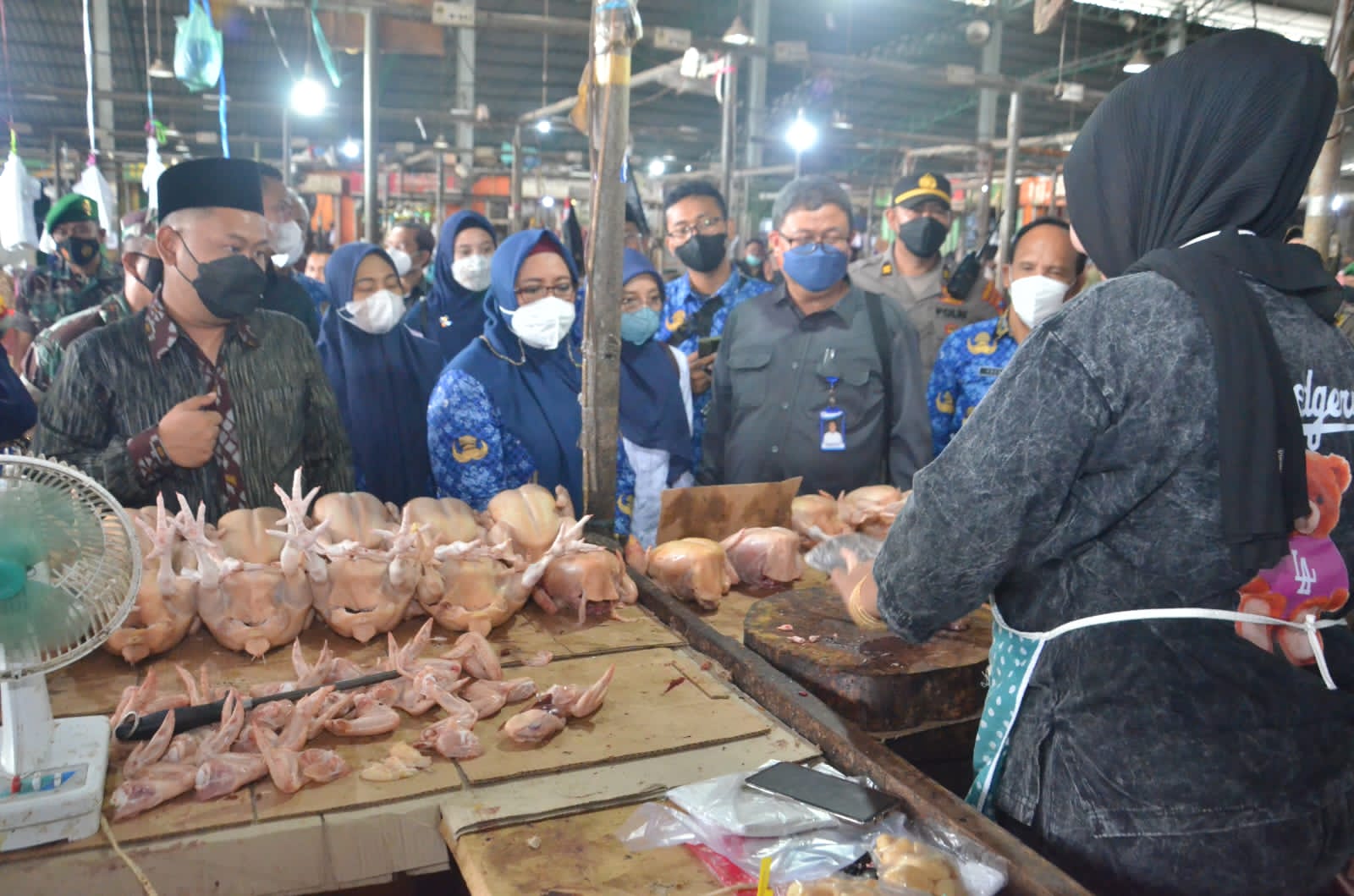 Sidak kali ini dilakukan bersama para jajaran Forkopimda, Kepala Dinas Koperasi Dan Usaha Mikro Perindustrian Dan Perdagangan Malahatul Fardah, Kepala Dinas Pertanian Gresik Eko Anindito Putro, perwakilan dari BPS (Badan Pusat Statistik) Gresik, perwakilan dari Kominfo, dan Forkopimcam Gresik. (yud)