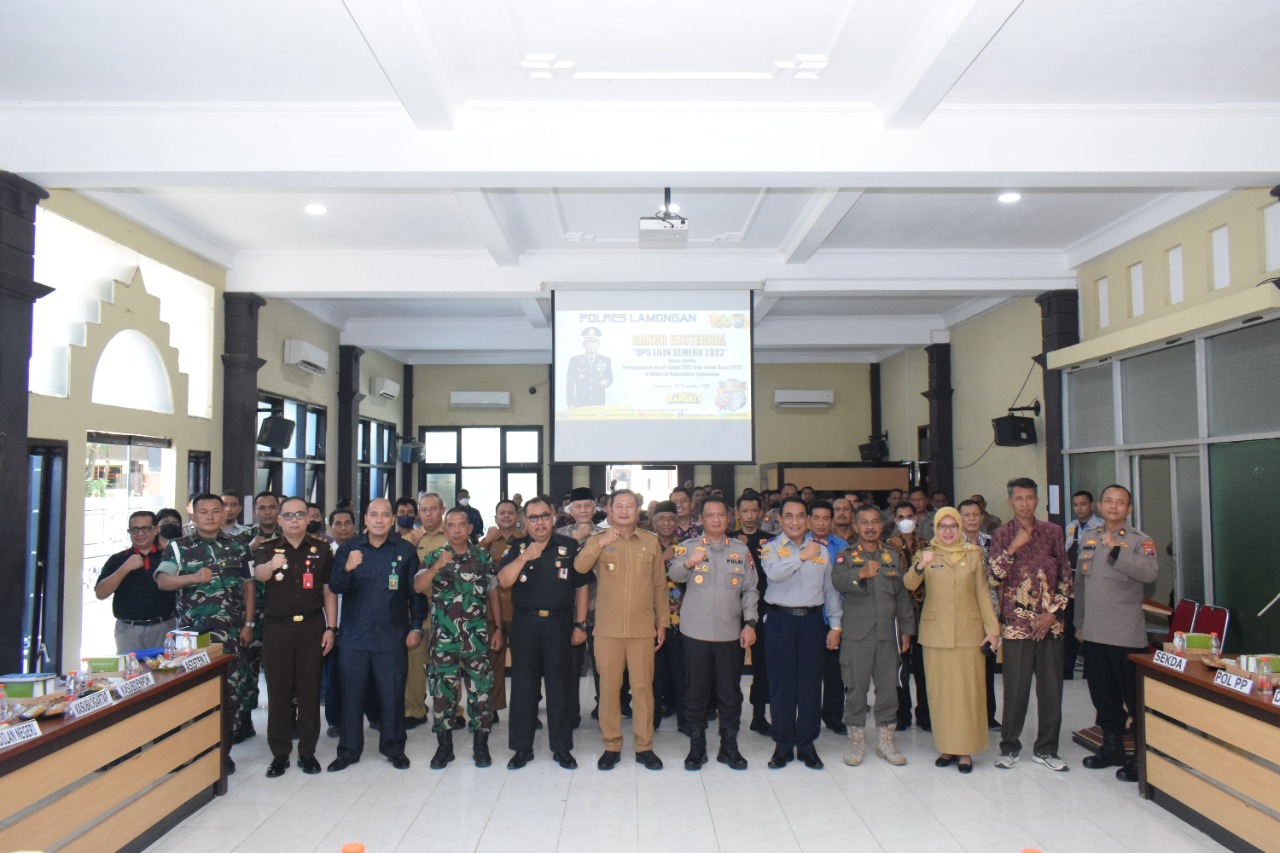 KLIKJATIM.Com | Lamongan - Dalam rangka menjaga suasana tetap kondusif, aman dan nyaman menjelang Natal dan tahun baru (Nataru) di wilayah Kabupaten Lamongan. Jajaran Forkopimda Lamongan menggelar Rapat Koordinasi Eksternal OPS Lilin Semeru 2022 di Ruang SKJ Polres Lamongan, Selasa (20/12/2022).