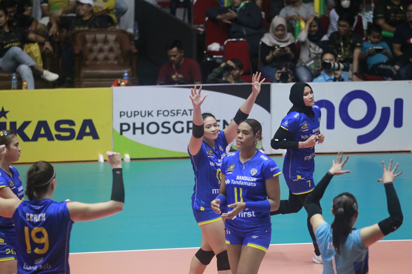 KLIKJATIM.Com | Gresik - Tim putri Jakarta Pertamina Fastron memastikan satu tempat di babak final four usai membungkam tuan rumah Gresik Petrokimia Pupuk Indonesia, dalam lanjutan PLN Mobile Proliga 2023 di GOR Tridharma Gresik, Minggu (5/2/2023). Skor berakhir 3-2 (25-23, 18-25, 23-25, 25-18, 15-12).