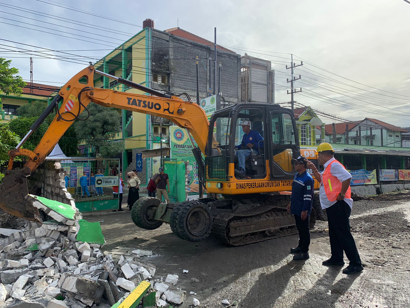 KLIKJATIM.Com | Gresik — Pemkab Gresik melanjutkan perobohan kios di sepanjang Jalan Raya Manyar Gresik, Rabu (15/02/2023).
