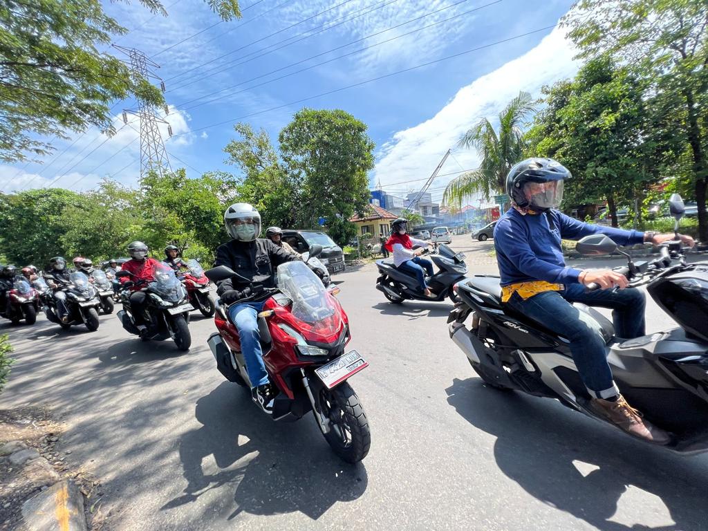 KLIKJATIM.Com | Sidoarjo - PT. Mitra Pinasthika Mulia (MPM Honda Jatim) distributor sepeda motor bersama dengan jaringan dealer motor Honda wilayah Sidoarjo menggelar ADV160 Weekend Ride. Bikers ADV pun menjajal skutik lincah dan bertenaga itu di jalanan kota. Mereka pun puas dengan performa skutik yang nyaman di segala medan itu.