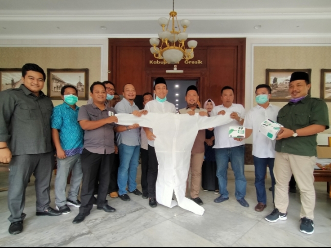 Total sebanyak 50 anggota DPRD Gresik pun rela patungan. Mereka membeli 50 set APD cover all, dan puluhan ribu masker.