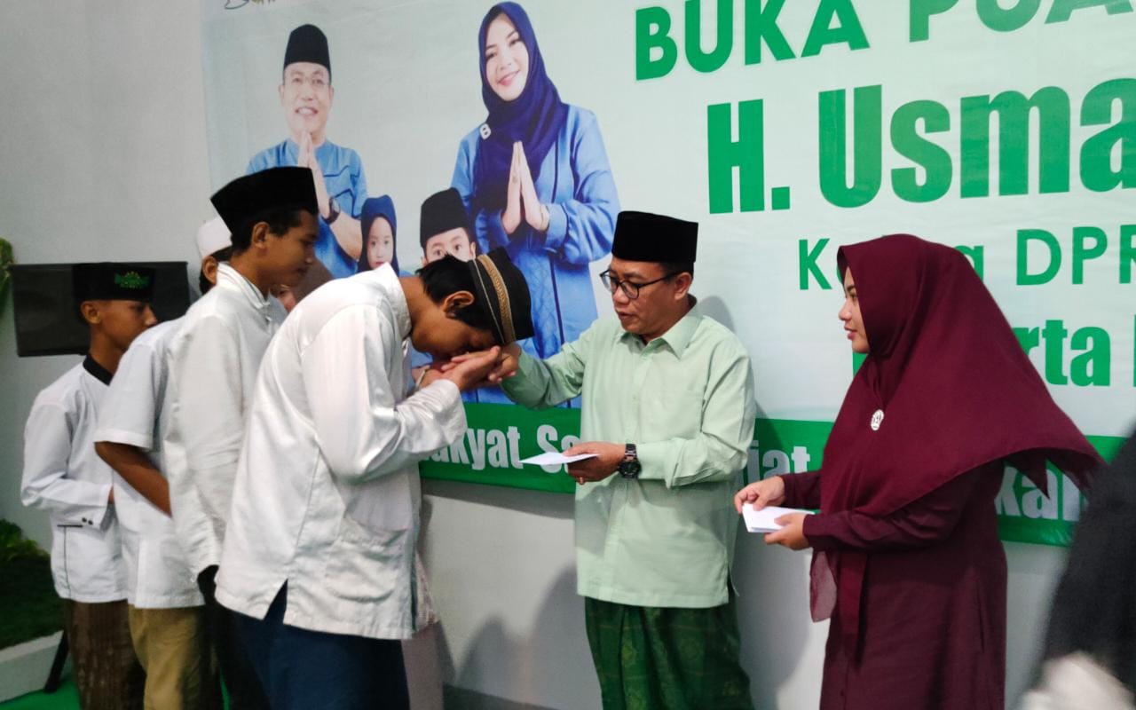 Dalam kesempatan ini pula H Usman bersama istri membagikan paket sembako dan santunan kepada puluhan anak yatim piatu yang hadir. (ris)