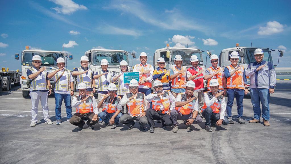 Menandai dimulainya kolaborasi ini, Direktur Utama TTL, David P. Sirait dan Direktur Utama MTI, Rury Racmawati berfoto bersama dengan jajaran manajemen dan operator truk serta sekaligus melihat secara langsung operasi truk di terminal.