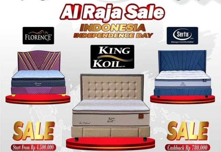 Nah, Al Raja Matras Icon Mall menawarkan promo diskon dan cashback untuk setiap pembelian spring bed King Koil, Serta dan Florence selama Bulan Agustus.