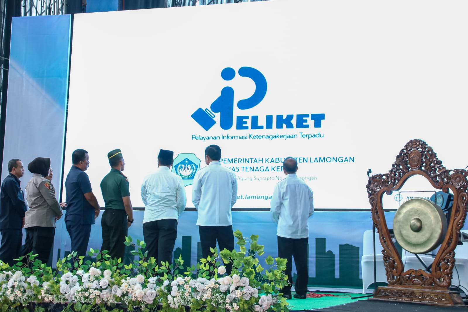 KLIKJATIM.Com | Lamongan - Pemkab Lamongan melakukan inovasi untuk menjembatani perusahaan yang membutuhkan tenaga kerja dengan para pencari kerja di Kabupaten Lamongan. Dimana pada Job Fair yang digelar setiap tahunnya, tahun ini Pemkab Lamongan juga melaunching Aplikasi Peliket (Pelayanan Informasi Ketenagakerjaan Terpadu), dimana aplikasi ini merupakan aplikasi penyedia informasi terkait lowongan kerja, pemagangan, hingga pelatihan kerja.