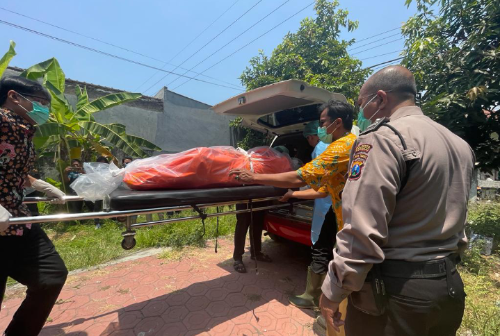 Polisi dan petugas RSUD Sidoarjo kemudian mengevakuasi korban ke dalam ambulance dan membawanya untuk autopsi. (qom)