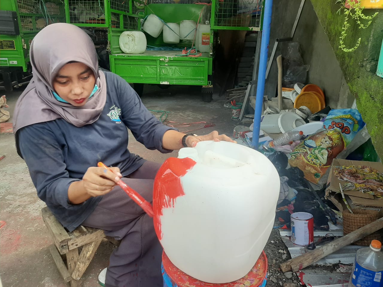 Nah, wanita yang juga ketua Asosiasi Bank Sampah Gresik (ASBAG) ini kemudian merubah barang bekas menjadi barang bernilai harganya. Dia membeli sejumlah jerigen bekas. Ada yang dibeli dari perusahaan di Gresik.