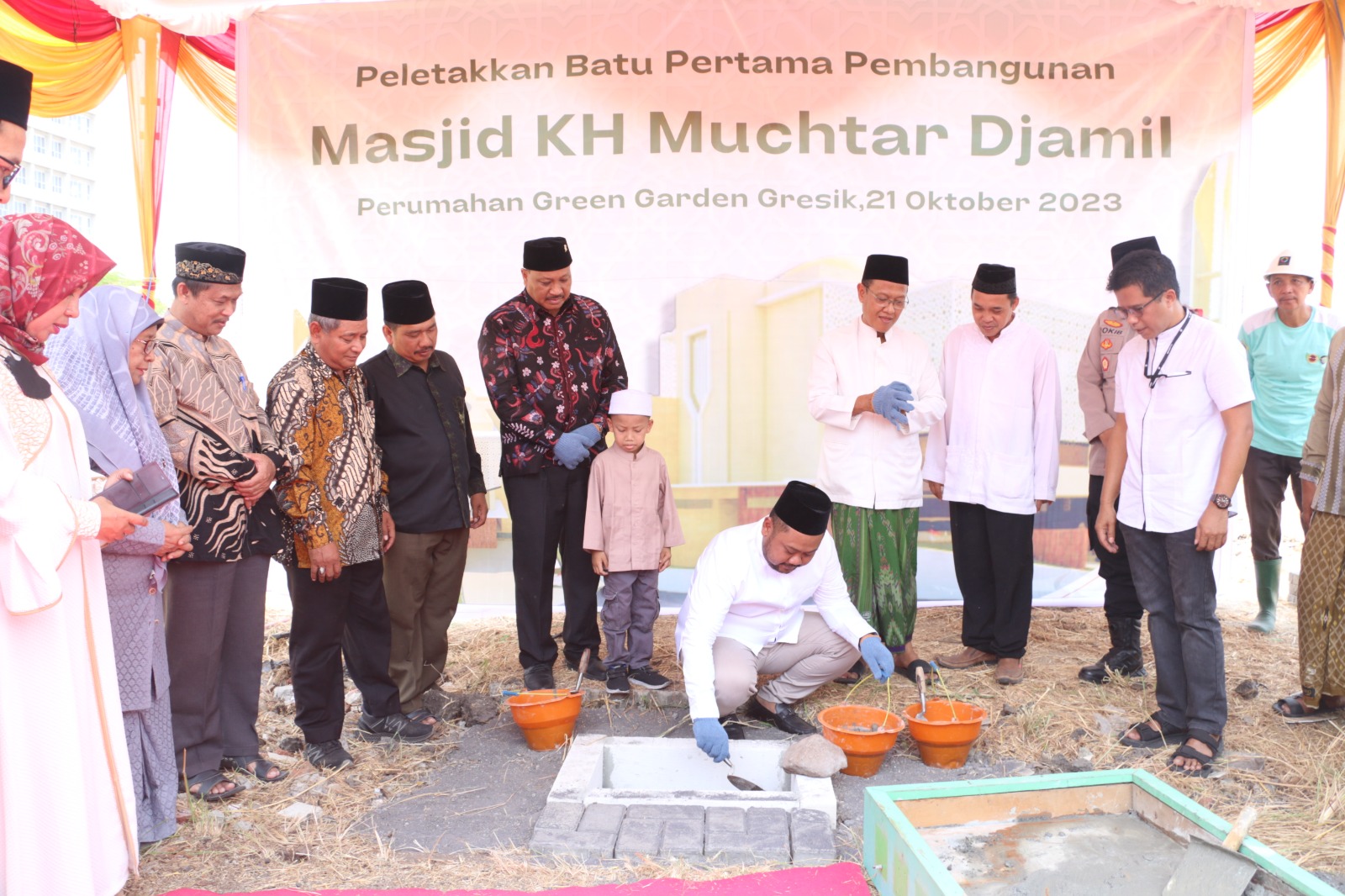 KLIKJATIM.Com | Gresik - Bupati Gresik Fandi Akhmad Yani meresmikan peletakan batu pertama Masjid KH Muchtar Djamil di Perumahan Green Garden Gresik, kawasan Iconland Jalan dr Wahidin Sudirohusodo Sabtu (21/10/2023).
