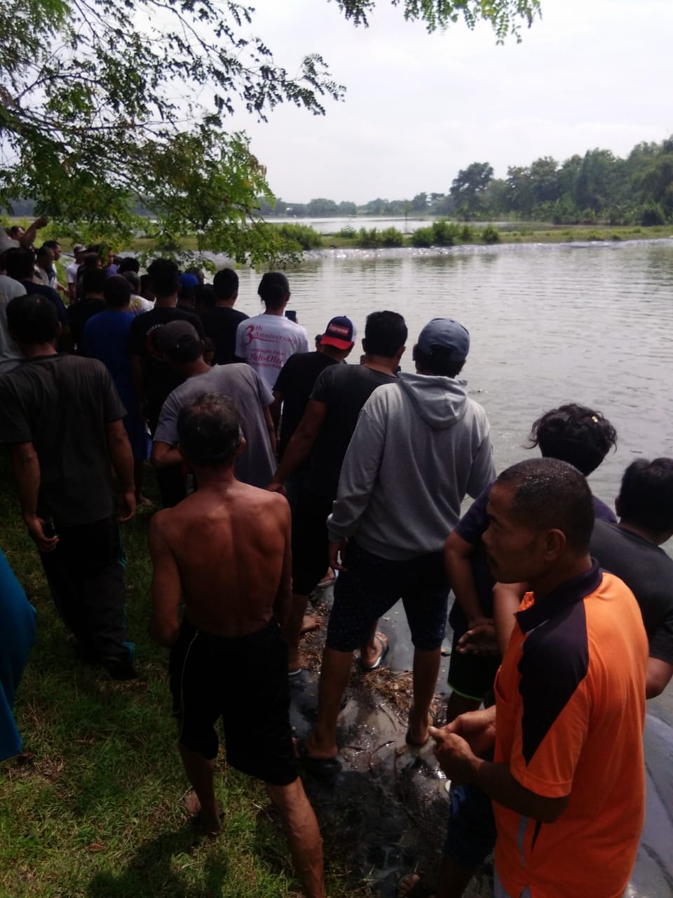 Tak lama kemudian, warga atas nama Khanif dan Ruslan tiba dan mencoba menolong korban. Sayangnya, jasad korban sudah tenggalam. Bersama warga lainnya ketiga saksi lalu mencari jasad korban dan ditemukan satu jam kemudian.