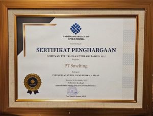KLIKJATIM.Com | Gresik - Perusahaan pencetak tembaga yang berbasis di Kabupaten Gresik, PT Smelting meraih penghargaan nominasi perusahaan terbaik kategori perusahaan modal asing (PMA) berskala besar dalam Naker Award 2023 yang diselenggarakan Kementerian Tenaga Kerja (Kemnaker).