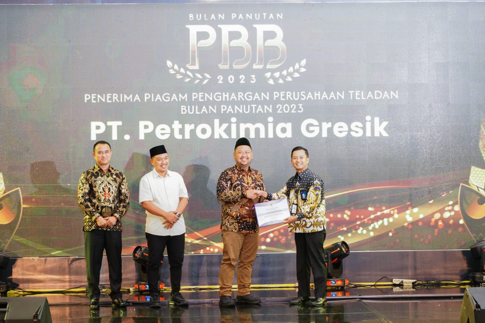 KLIKJATIM.Com | Gresik - Petrokimia Gresik kembali mendapatkan penghargaan dari Bupati Gresik Fandi Akhmad Yani atas kepatuhannya membayar Pajak Bumi dan Bangunan alias PBB tahun 2023 ini. Penghargaan tersebut diserahkan Yani pada momen Bulan Panutan PBB, Kamis 14 Desember 2023.