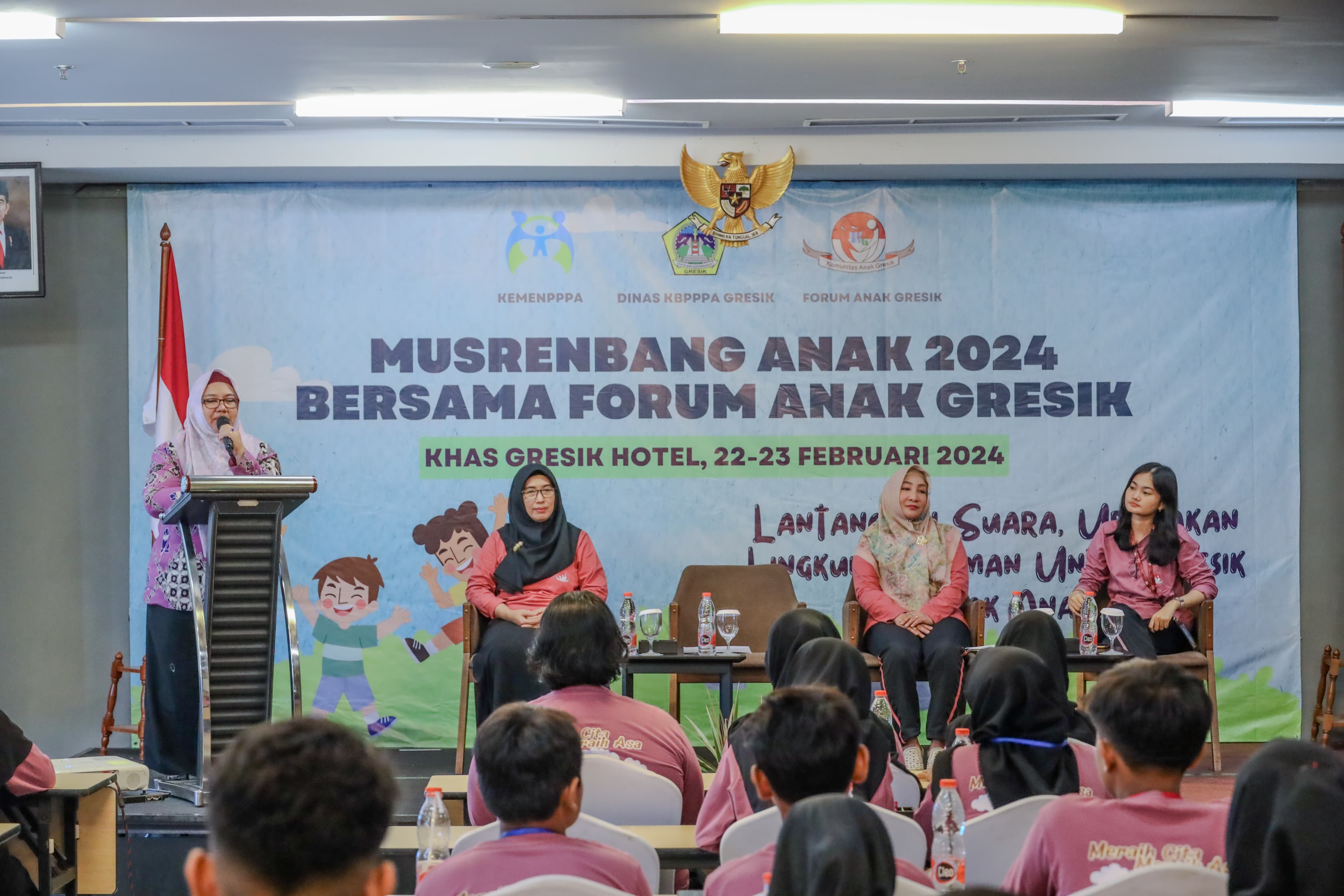 Anak-anak yang dimaksud di sini adalah mereka yang masih berusia dibawah 18 tahun. Hadir pula Kepala Dinas KBPPPA dr. Titik Ernawati dan Ketua Forum Anak Gresik Putriyah Marsha Naura.