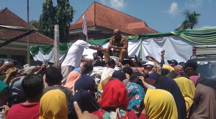 KLIKJATIM.Com | Bojonegoro - Warga di Kabupaten Bojonegoro menyerbu harga murah di halaman Bakorwil Bojonegoro. Warga yang berbondong-bondong itu menyerbu beras Stabillisasi Pasokan dan Harga Pangan (SPHP) dalam kegiatan Gerakan Pangan Murah (GPM) yang digelar Pemkab Bojonegoro.