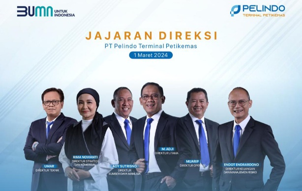 Dengan pergantian tersebut, maka komposisi Direksi PT Pelindo Terminal Petikemas terhitung mulai tanggal 1 Maret 2024 adalah sebagai berikut:Direktur Utama : M. AdjiDirektur Operasi : MuaripDirektur Teknik : UmarDirektur SDM : Ady SutrisnoDirektur Keuangan dan Manajemen Risiko : Endot EndrardonoDirektur Strategi dan Komersial : Rima Novianti. (ris)