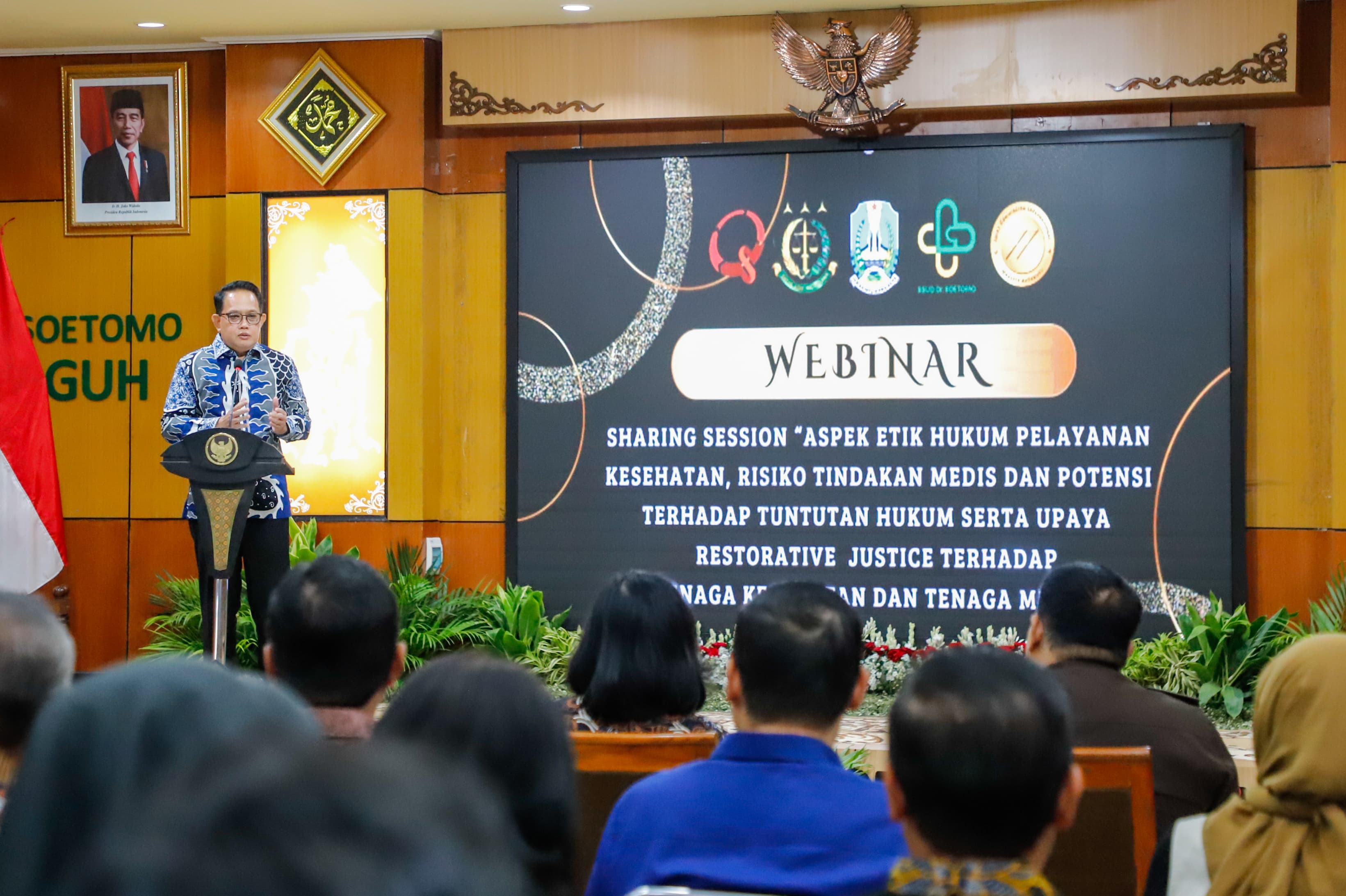 KLIKJATIM.Com |SURABAYA, 25 MARET 2024 - Pejabat (Pj) Gubernur Jawa Timur Adhy Karyono menghadiri Sharing Session bertema Aspek Etik Hukum Pelayanan Kesehatan Rumah Sakit, Risiko Tindakan Medis dan Potensi Terhadap Tuntutan Hukum serta Upaya Restorative Justice di RSUD Dr. Soetomo Surabaya, Senin (25/3) sore.